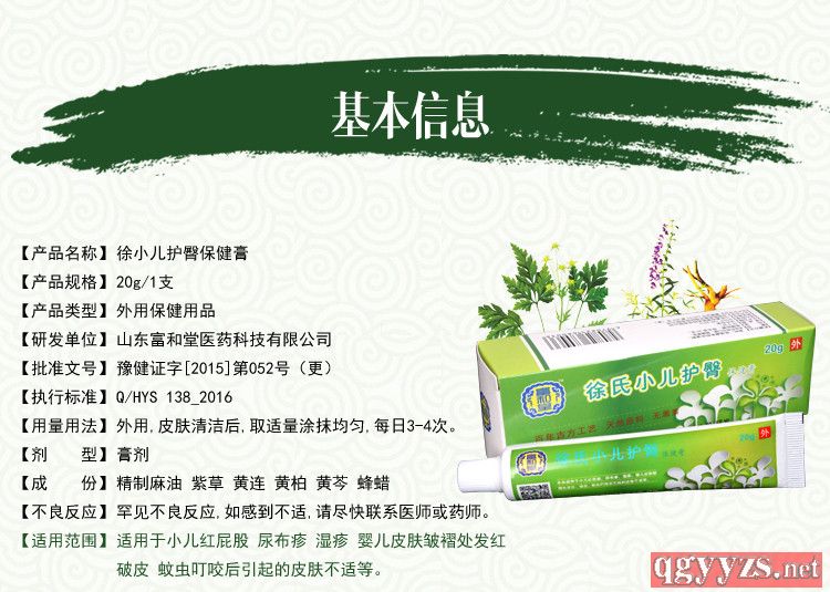 | 補(bǔ)充說(shuō)明 | 商品名稱:徐氏燒燙傷保健膏 商品規(guī)格:40g*1支 產(chǎn)品類型:外用保健用品 研發(fā)單位:山東富和堂醫(yī)藥醫(yī)藥有限公司 批準(zhǔn)文號(hào):豫健證字[2015]第052號(hào)(更) 執(zhí)行標(biāo)準(zhǔn):Q/HYS084-2016 用法:外用,涂抹在燒燙表面 劑型:本品為棕褐色的軟膏 用量:每4-6小時(shí)涂抹一次,分泌物多時(shí)可清理 |