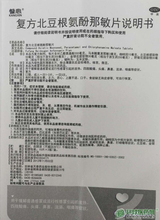 | 通用名稱(chēng) | 復(fù)方北豆根氨酚那敏片 |