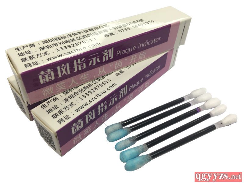 | 使用方法 | 1.將指示劑擠出在棉簽棒上。2.涂抹在牙齒面,牙齦,牙縫隙處。3.漱口,將多余的指示劑吐出,殘留在牙齒上顯色部分就是成千上萬個細(xì)4.*后用牙刷將染色的菌斑清除,若是結(jié)石或齲齒應(yīng)盡快聯(lián)系牙科醫(yī)生做相應(yīng)的處理。 |