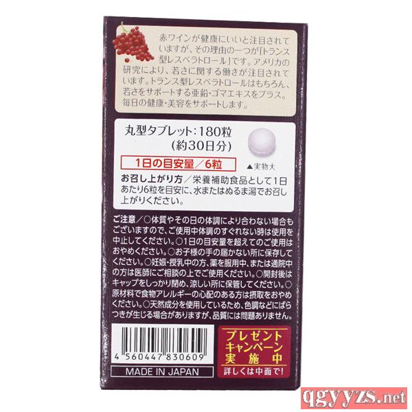 | 補充說明 | 1、原料采用法國優(yōu)質紅葡萄,經萃取精煉得白藜蘆醇; 2、每日份6粒含有白藜蘆醇10毫克,相當于17杯紅酒含量,配合多酚60mg和鋅;年輕肌膚,增強彈性。 3、芝麻提取物配合,有效抗氧化,修復細胞損傷。 4、規(guī)格:180粒/瓶。 5、使用方法:一日4-6粒。 |