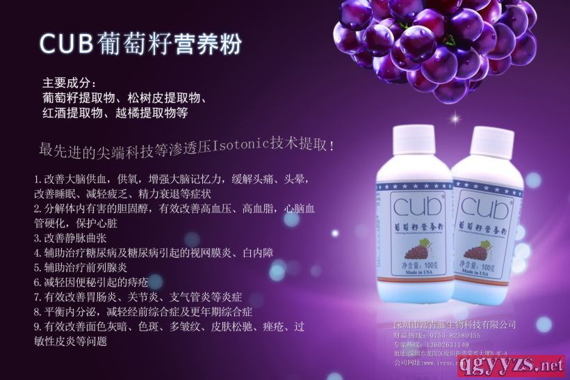 產(chǎn)品名稱: 美國進(jìn)口CUB葡萄籽營養(yǎng)粉健康保健營養(yǎng)品