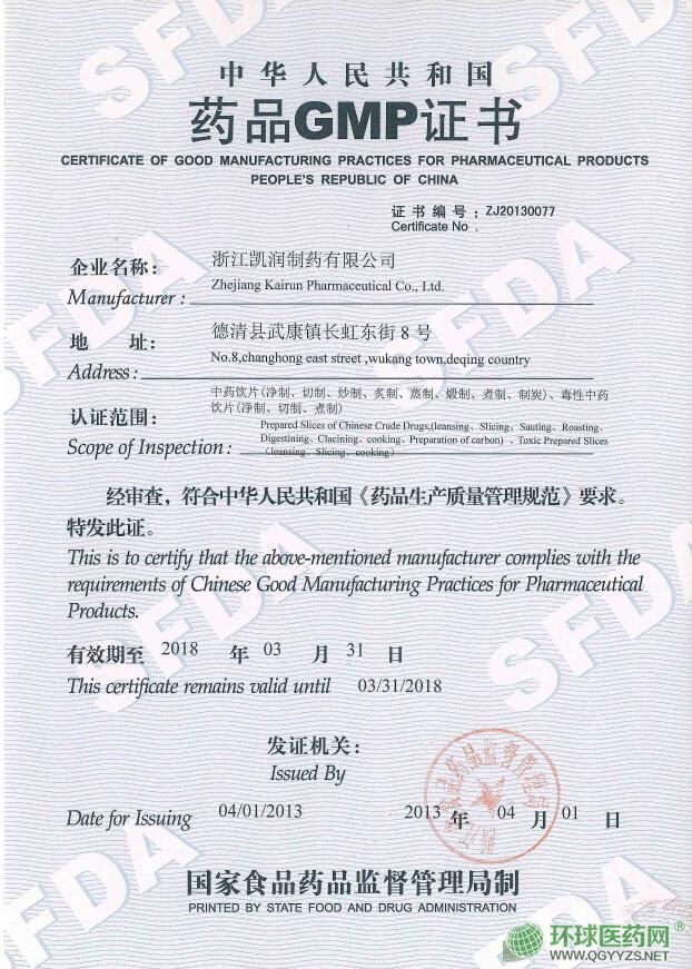 生產(chǎn)企業(yè): 浙江凱潤藥業(yè)股份有限公司
