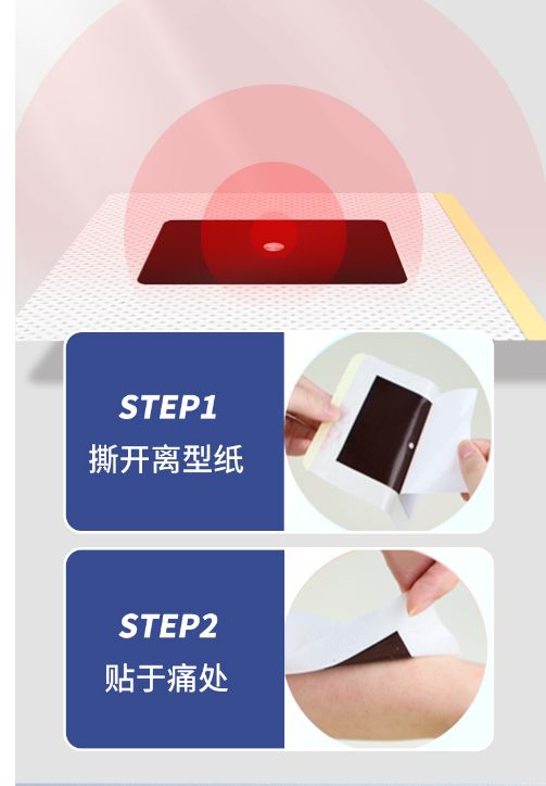 | 使用方法 | 清潔患處,確認(rèn)包裝無破損后,打開包裝,取出遠(yuǎn)紅外磁療貼,將貼劑的隔離膜撕去,貼于患處,每24小時更換一次 |