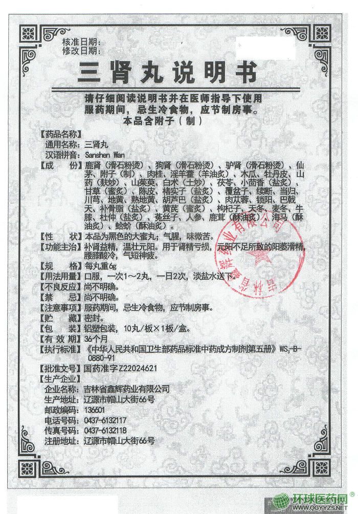 通用名稱: 三腎丸