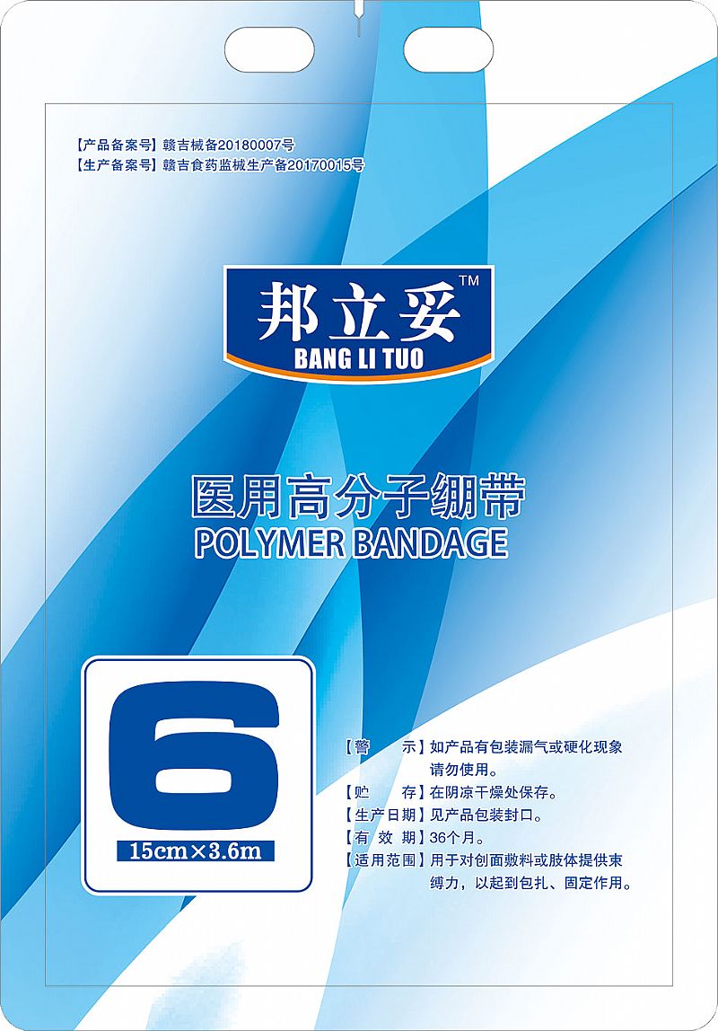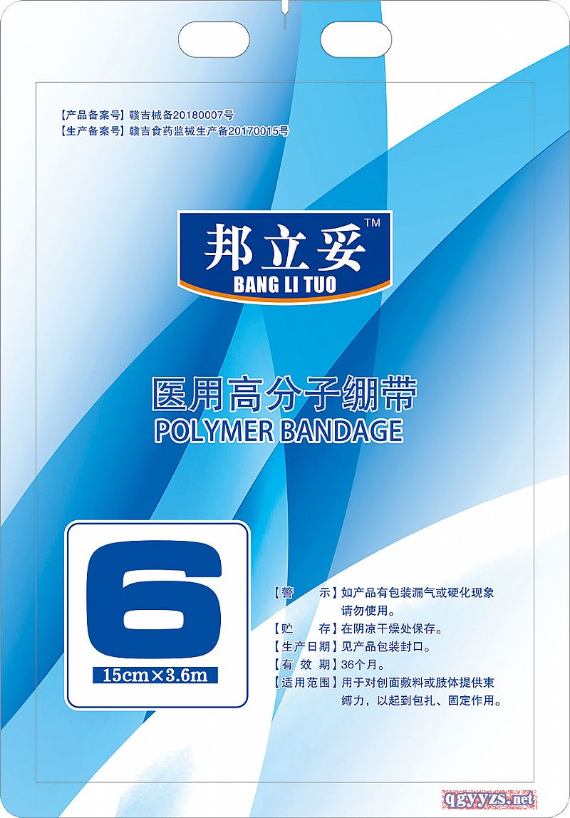 | 補(bǔ)充說明 | 使用方便 操作簡單、快捷 硬度高 是普通石膏的20倍 重量輕 是普通石膏的20% 透氣性好 使用部位皮膚可正常呼吸、代謝 防水性好 淋濕吹干后不影響使用性能 透X光 X射線透過率100% 復(fù)診拍片不用拆開 易成型 產(chǎn)品可依據(jù)創(chuàng)傷部位隨意塑型 綠色環(huán)保 清潔衛(wèi)生,無塵、**、無過敏 |