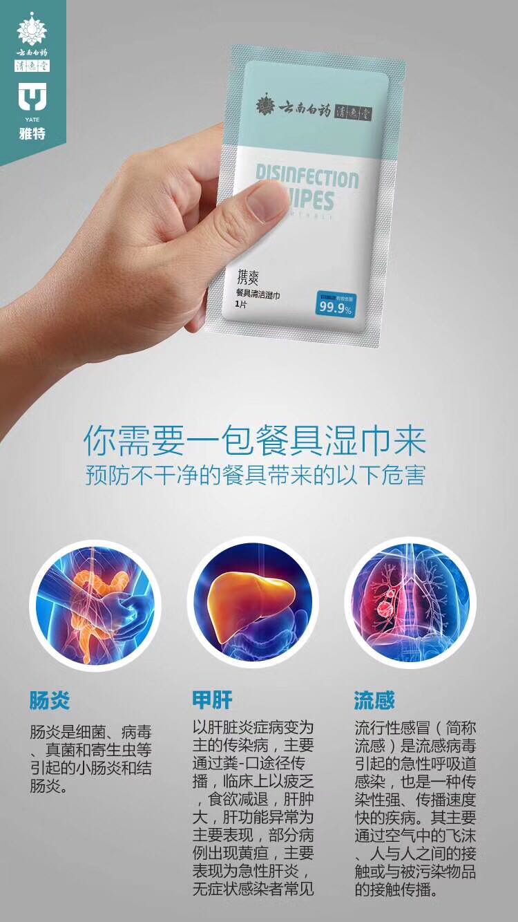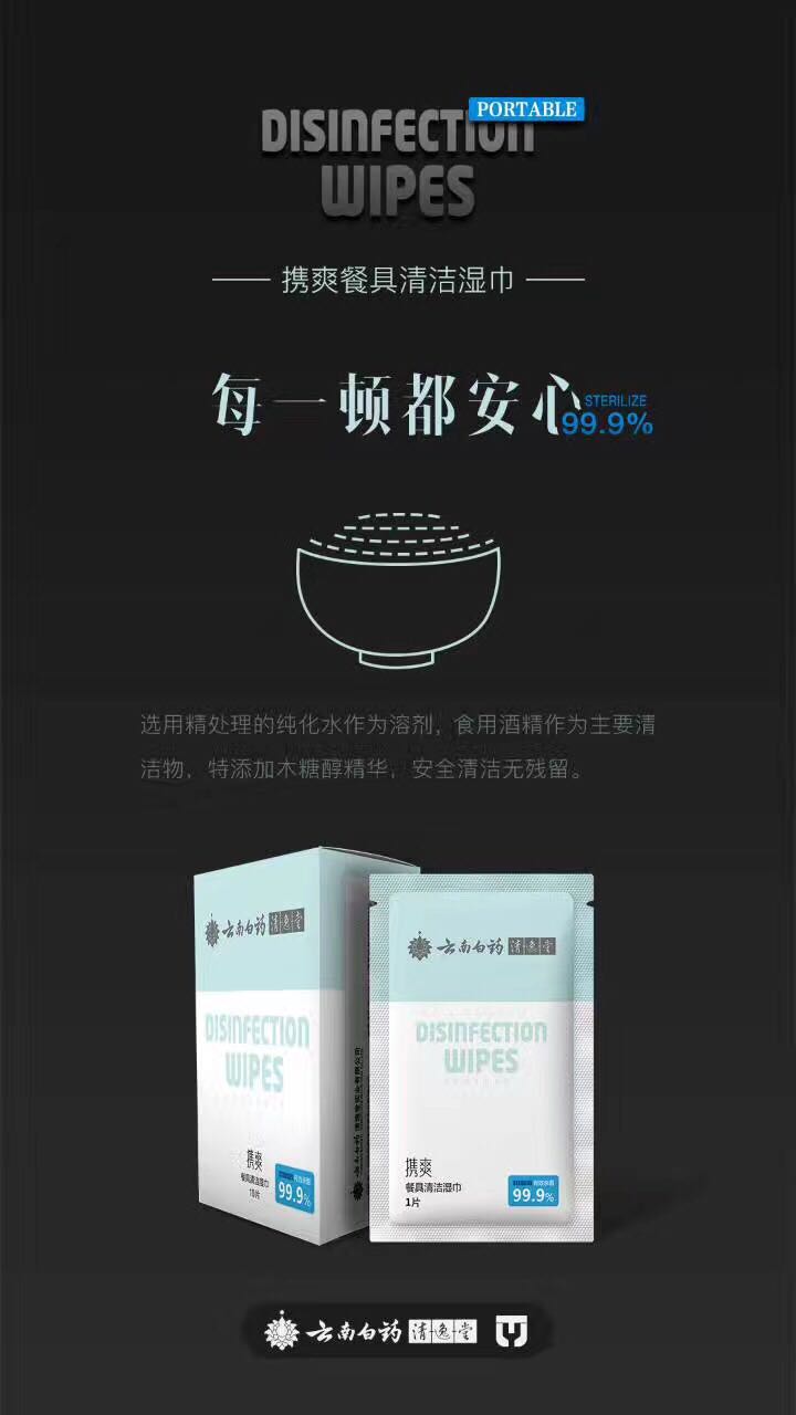 - 小產(chǎn)品大未來,做為一名用餐消費(fèi)者你是否有過這樣的困惑,餐廳提供任何餐具都不干凈不衛(wèi)生,同時(shí)還傳播傳染疾病,尤其是老人小孩等免疫力低下的人群更容易受到傳播,但你又不得不用,只能被動(dòng)的去接受。所以你只能在使用餐具前總要重復(fù)不斷的用茶水沖洗碗筷,以安慰自己這樣會(huì)干凈點(diǎn),用得放心點(diǎn)。其實(shí)你不知道這是殺不了菌,也消不了毒。消費(fèi)者已經(jīng)被這個(gè)問題困擾很久,急需一款能真正給餐具消毒的產(chǎn)品,可以讓他們放心安心的使用餐具,云南白藥餐具消毒濕巾填補(bǔ)了這一空白。且市場(chǎng)前景廣闊,**的藍(lán)海,以昆明為例,一天的外出用餐人群在80萬人左右,多么驚人的數(shù)字,如果產(chǎn)品服務(wù)十分之一的人群,這將是多大的收益。如果你有餐具消毒企業(yè)資源,餐廳資源亦或是餐廳酒水飲料供應(yīng)商資源請(qǐng)聯(lián)系我,