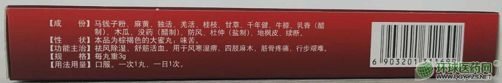 | 功能主治 | 祛風(fēng)除濕,舒筋活血。用于風(fēng)寒濕痹,四肢麻木,筋骨疼痛,行步艱難。 |