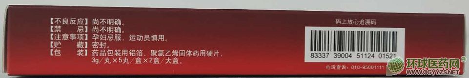 | 產(chǎn)品規(guī)格 | 每丸重3g*5丸*2小盒/中盒*100中盒/件 |
