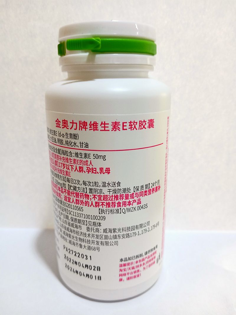 | 主要成分 | 每粒含:維生素E50mg |