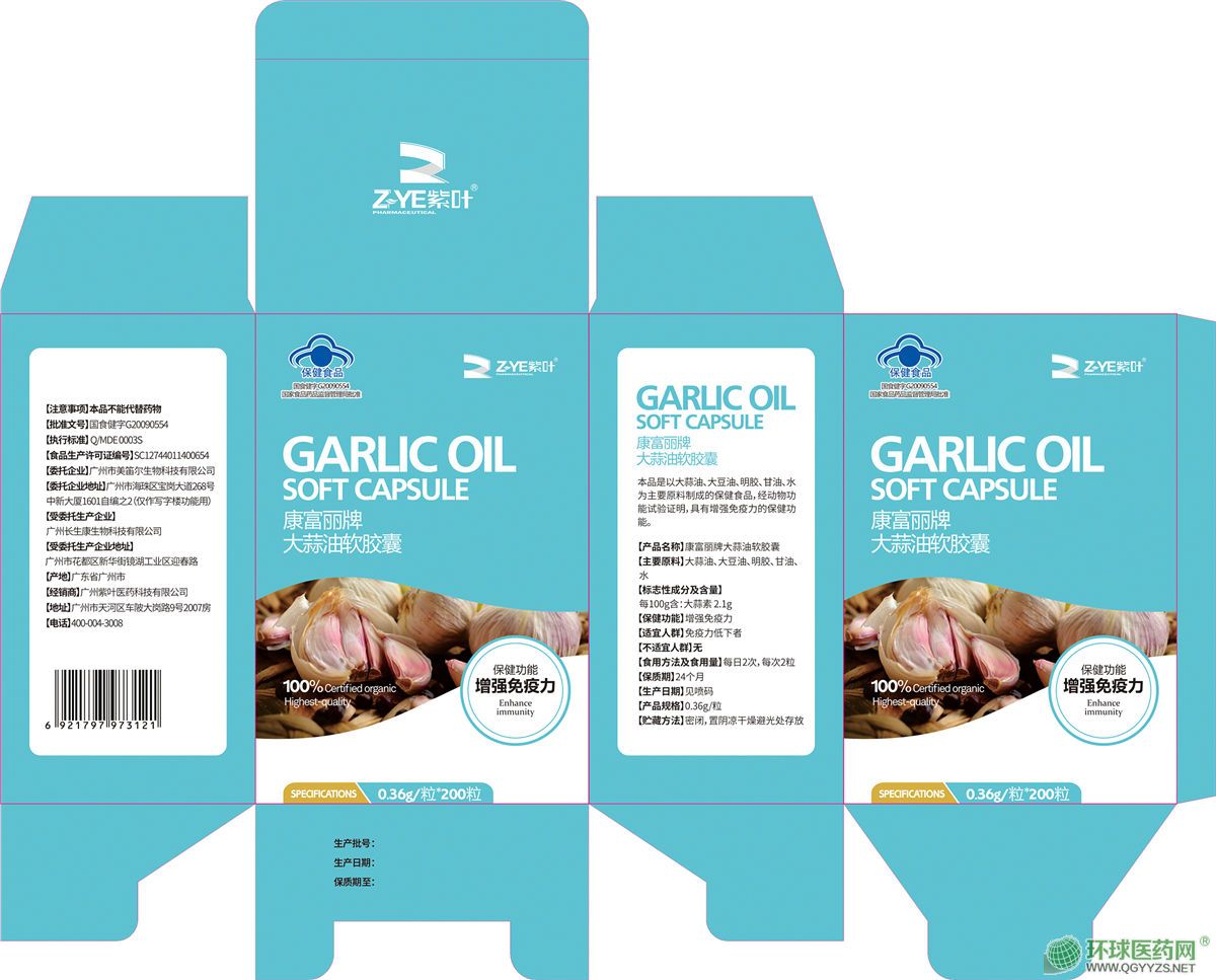 | 產(chǎn)品名稱 | 康富麗牌大蒜油軟膠囊 |