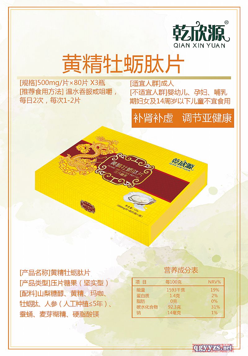 | 產(chǎn)品名稱 | 黃精牡蠣肽片 |