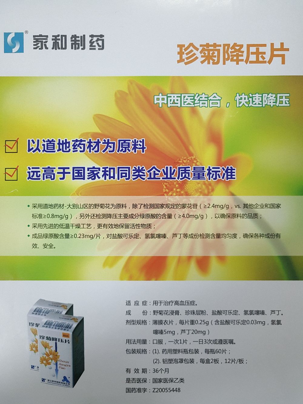| 通用名稱 | 珍菊降壓片 |