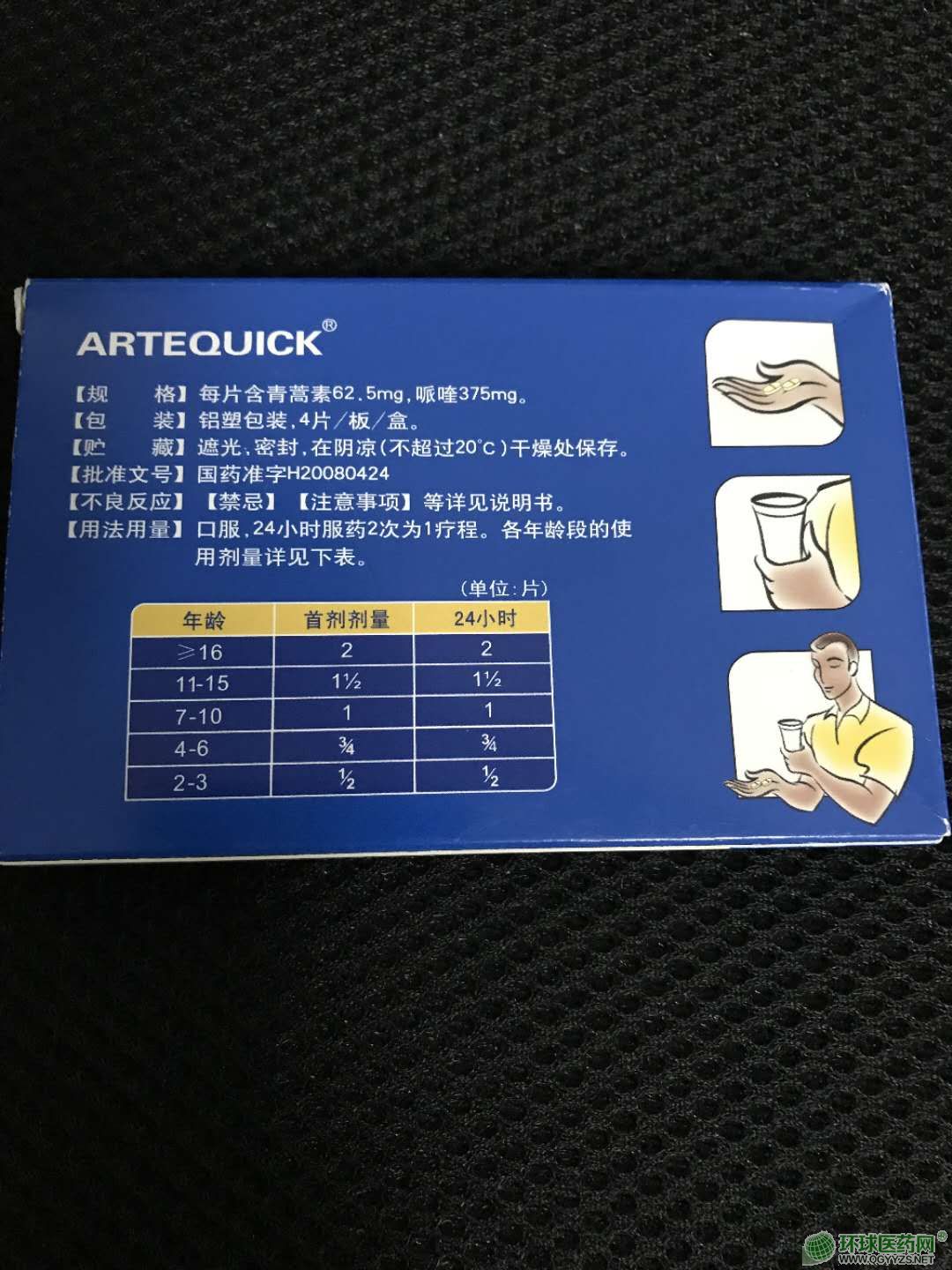 每片含青蒿素62.5mg,哌喹375mg。 |