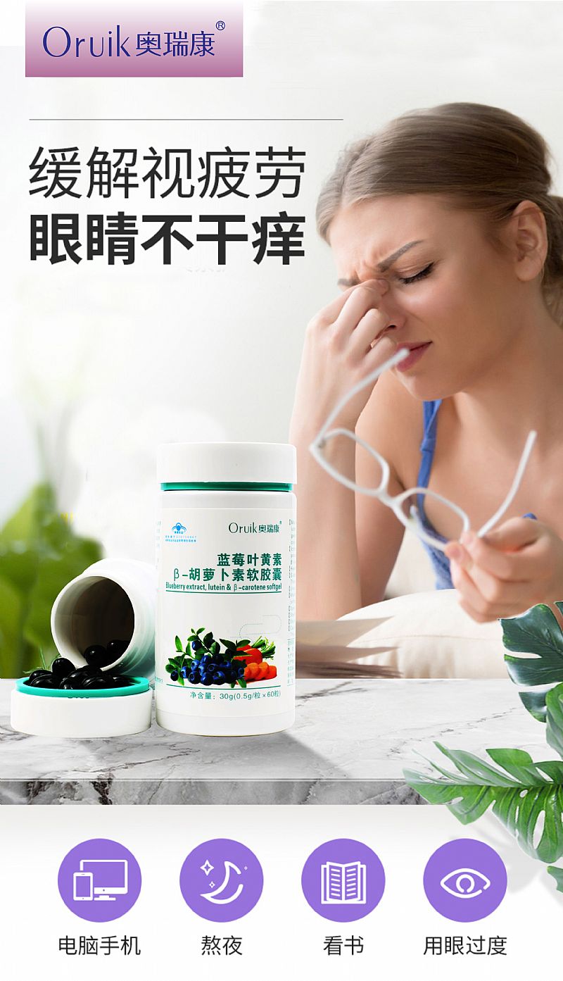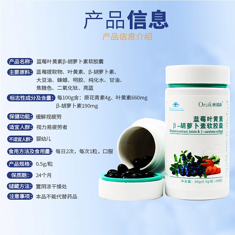 | 品牌名稱 | 奧瑞康藍(lán)莓葉黃素B胡蘿卜素軟膠囊 |