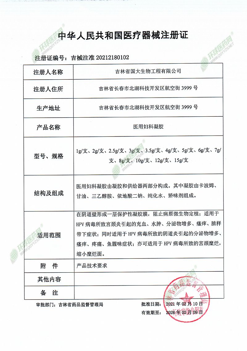 | 產(chǎn)品名稱 | (HPV)醫(yī)用婦科凝膠 |