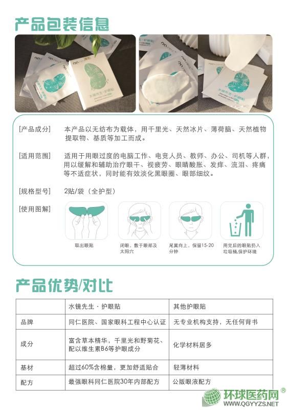 | 產(chǎn)品用途 | 用途:用眼過度者,手機電腦族,近視弱視眼部干眼視物模糊者,白內(nèi)障青光眼眼干,眼癢者,加班熬夜族等需要護理,緩解視疲勞。 功能:緩解視疲勞,補水;視物模糊等日常殺菌滋養(yǎng)護理、改善黑眼圈,淡化細紋。與國家眼科中心共同研發(fā)。 |