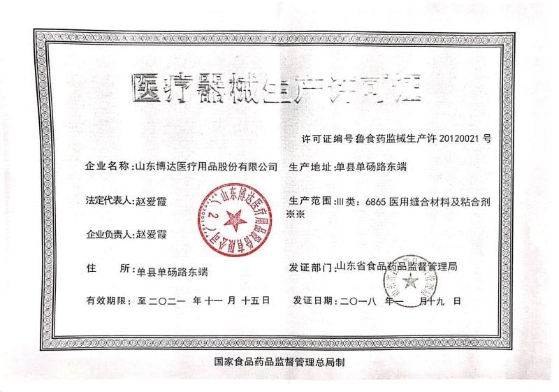 生產(chǎn)企業(yè): 山東博達醫(yī)療用品股份有限公司