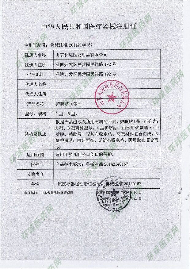 | 產(chǎn)品用途 | 本品由優(yōu)質(zhì)棉布,醫(yī)用脫脂紗,背膠,護紙組成,適用于新生兒斷臍后,醫(yī)院產(chǎn)科醫(yī)護人員及新生兒家庭對嬰兒斷臍后進行常規(guī)包扎和護理 |