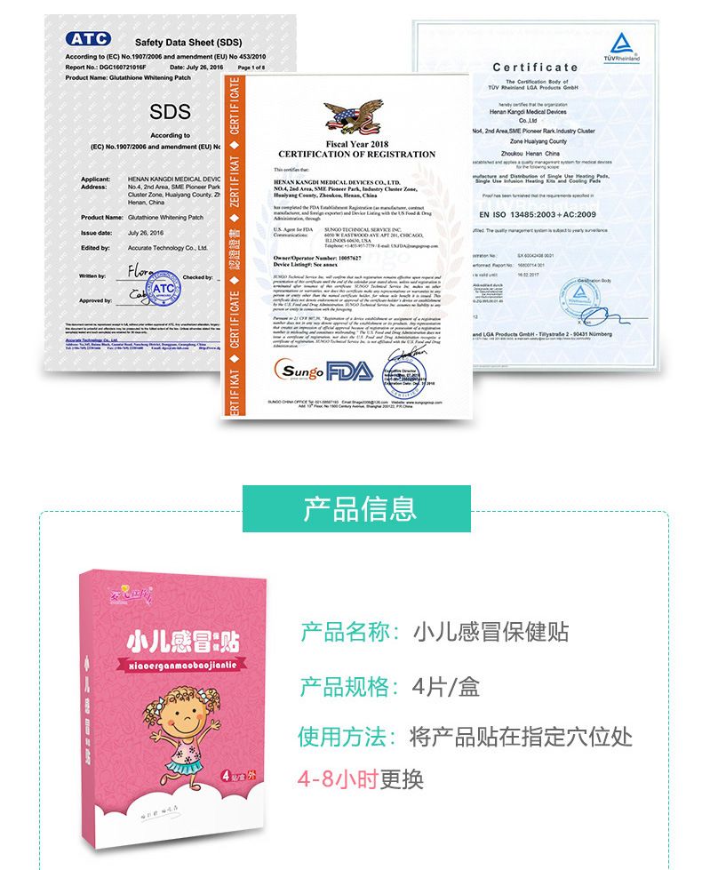 | 產(chǎn)品名稱 | 小兒感冒保健貼 |