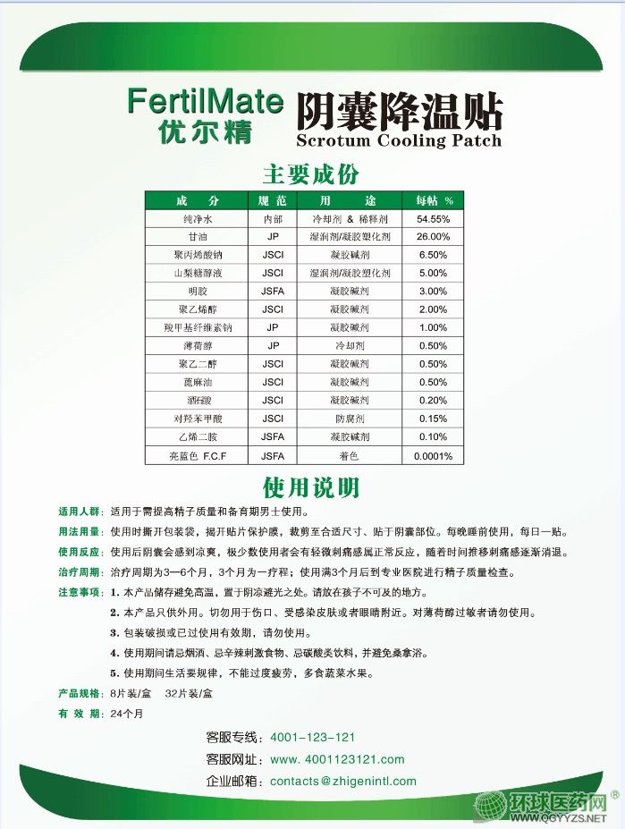 | 使用方法 | 使用時撕開包裝袋,揭開貼片保護膜,貼于陰囊部位。每日一至兩貼,早晚各一貼,每帖可連續(xù)使用8小時。 |