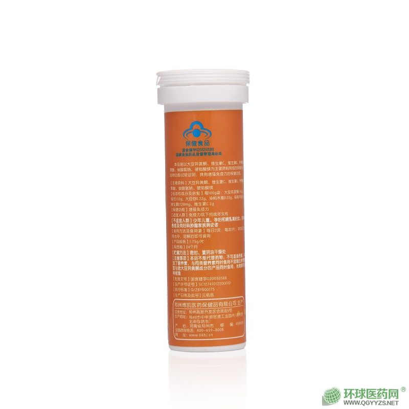 | 補(bǔ)充說明 | 本品以大豆異黃酮、維生素C、維生素E、檸檬酸、蘋果醋為主要原料制成的保健食品。經(jīng)功能性試驗(yàn)證明,具有增強(qiáng)免疫力的保健功能。 本品采用國際先進(jìn)的泡騰技術(shù)精制而成,是成年女性時(shí)尚的健康飲品(不含蔗糖、防腐劑)。 【主要原料】大豆異黃酮、維生素C、維生素E、檸檬酸、蘋果醋等 【功效成分及含量】每100克含:大豆異黃酮1960mg、維生素C2000mg、維生素E128mg. 【保健功能】增強(qiáng)免疫力 【適宜人群】免疫力低下者 【不適宜人群】少年兒童 【食用方法及使用量】:將本品放入約100ml飲用水中,溶解后即可食用,每日2次,每次1片、 【產(chǎn)品規(guī)格】1.75g/片 【保質(zhì)期】24個(gè)月 【儲(chǔ)藏方法】密封,在陰涼干燥處保存。 【注意事項(xiàng)】本品不能代替藥物;不可直接吞服。 【批準(zhǔn)文號(hào)】國食健字G20050588 【衛(wèi)生許可證號(hào)】豫衛(wèi)健生許字20110005號(hào) 【執(zhí)行標(biāo)準(zhǔn)】Q/ZBYB003-2004 康伊麗牌大豆異黃酮泡騰飲片(康伊麗牌大豆異黃酮泡騰飲片及其制造工藝獲得專利保護(hù),為一種含大豆異黃酮的復(fù)合泡騰制劑,專利號(hào)為:03156087.3) |