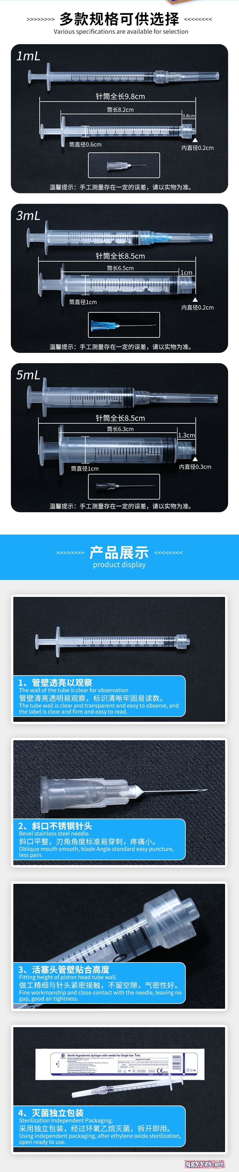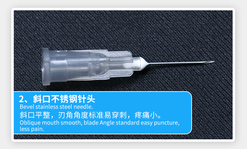 | 產(chǎn)品賣點(diǎn) | 【產(chǎn)品特點(diǎn)】無菌注射器材料嚴(yán)格按照標(biāo)準(zhǔn)執(zhí)行,經(jīng)環(huán)氧乙烷滅菌,無菌、無熱原;注射針頭采用醫(yī)用不銹鋼,斜口平整刃角,角度標(biāo)準(zhǔn)易穿刺,疼痛小;活塞頭與管壁貼合度高,與針頭接觸緊密,不易漏液;單只獨(dú)立包裝帶針;刻度清晰,多種規(guī)格;斜面針尖設(shè)計,針尖鋒利,可使患者在接受注射時減輕痛感。 |