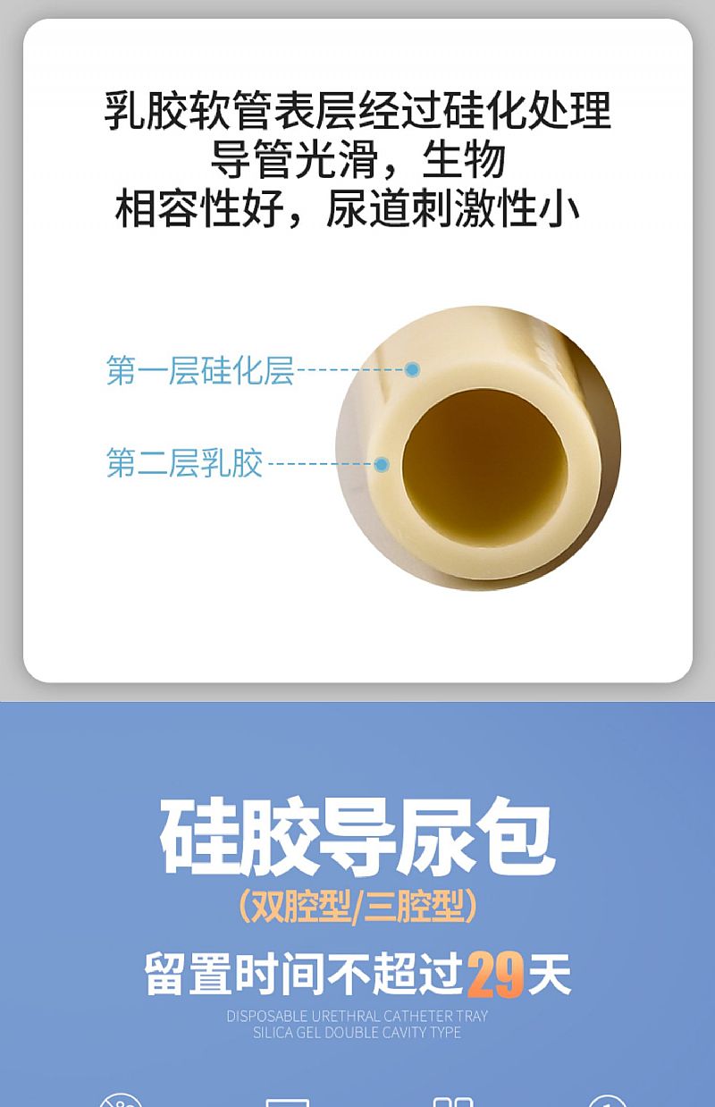 | 使用方法 | 1.遮擋患者,患者按導(dǎo)尿位仰臥,找到產(chǎn)品包上的撕裂口,打開導(dǎo)尿包,取出相關(guān)配置。 2.戴無(wú)菌手套,按導(dǎo)尿術(shù)消毒常規(guī)消毒后鋪巾:潤(rùn)滑導(dǎo)尿管。 3.操作者用另一鑷子持導(dǎo)尿管輕輕插入尿道,女性患者插入深度一般為4cm~6cm,男性患者插入深度一般為15cm~20cm,見有尿液流出后再插入2cm。 4.需作細(xì)菌培養(yǎng)者,留取中段尿于無(wú)菌試管中送檢。 5.連接引流袋和導(dǎo)尿管,按無(wú)菌操作規(guī)程進(jìn)行導(dǎo)尿。 6.術(shù)后拔出導(dǎo)尿管,丟棄**組件。 |