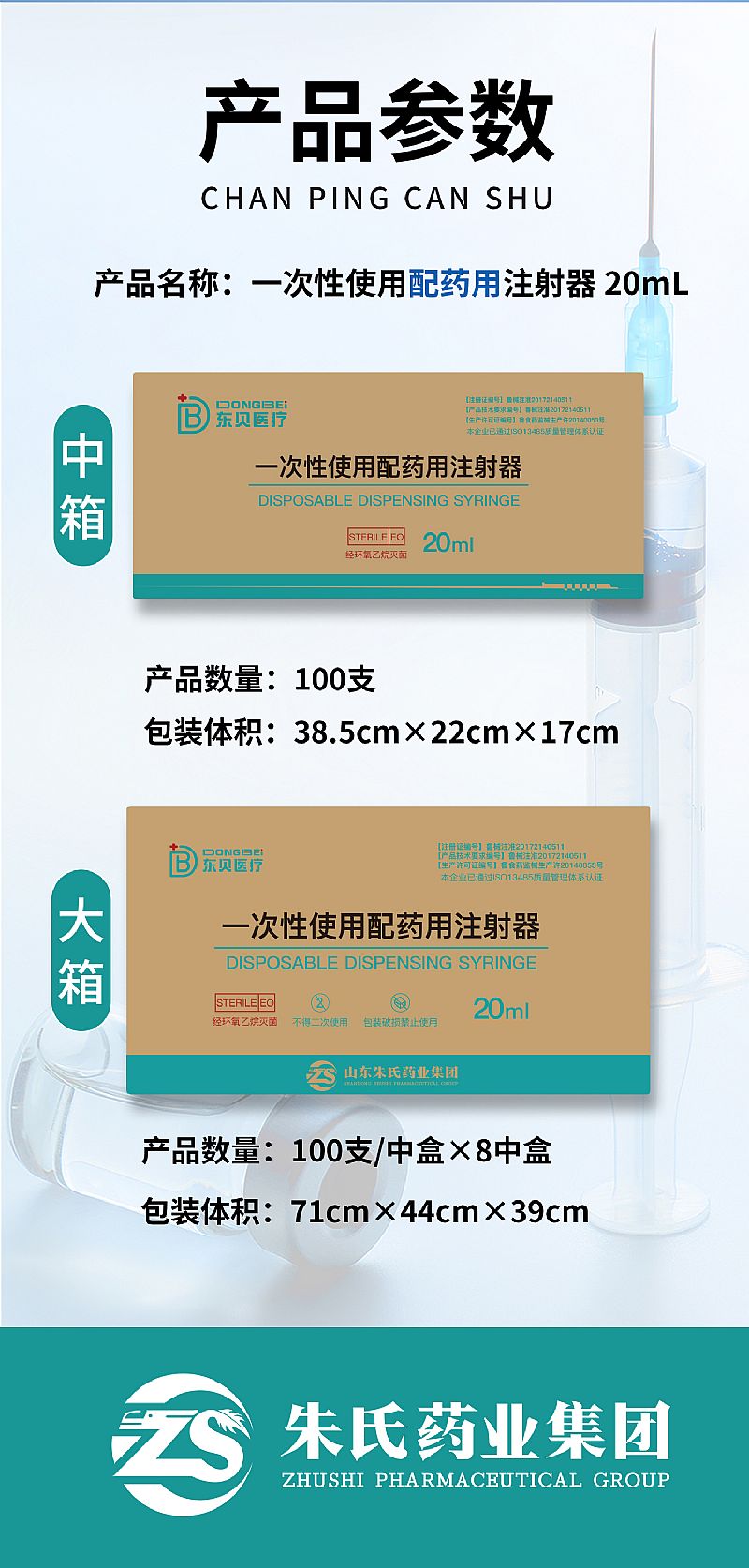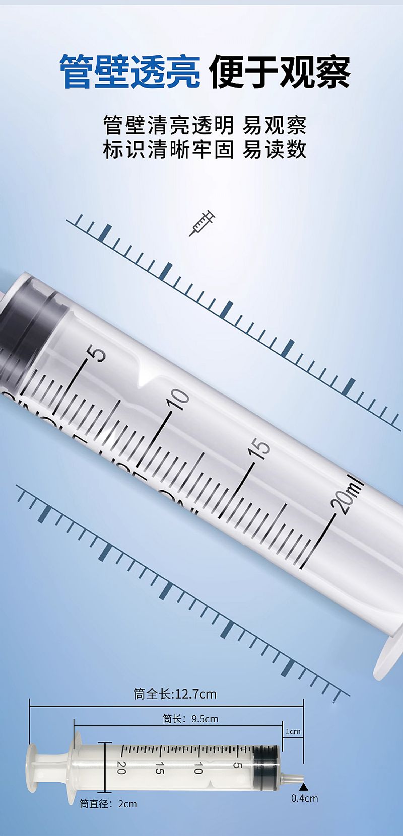 | 補(bǔ)充說明 | 型號(hào)規(guī)格:10ml 1支/袋*150支/盒*8盒/件;20ml 1支/袋*100支/盒*8盒/件;50ml 1支/袋*50支/盒*8盒/件 結(jié)構(gòu)組成:由外套、芯桿、活塞和配藥針(可選,由護(hù)套、針管、針座組成)組成。 產(chǎn)品特點(diǎn): 1、管壁清晰透亮易觀察,標(biāo)識(shí)清晰易讀數(shù)。 2、活塞頭與管壁貼合度高,與針頭接觸緊密不易漏液。 3、注射針頭采用精良不銹鋼斜口平整,刃角角度標(biāo)準(zhǔn)易穿刺,疼痛感 |