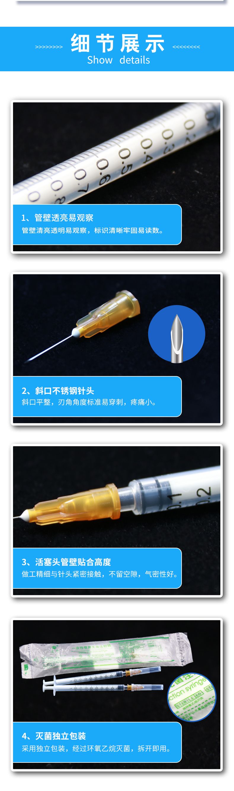 | 產(chǎn)品賣點(diǎn) | 本產(chǎn)品適用于抽吸液體或在注入液體后立即注射用。原材料為:外套、芯桿和針座材料為醫(yī)用級(jí)聚丙烯,護(hù)套材料為醫(yī)用聚乙烯,活塞材料為異戊合成橡膠,針管 材料為醫(yī)用不銹鋼,粘合劑材料為環(huán)氧樹(shù)脂,潤(rùn)滑劑材料為二甲基硅氧烷。 注意事項(xiàng) |