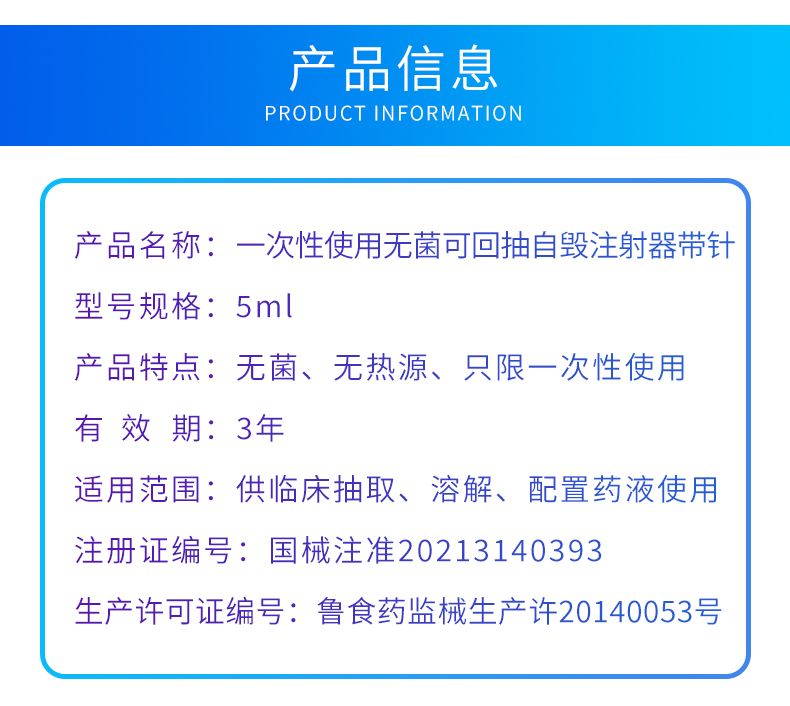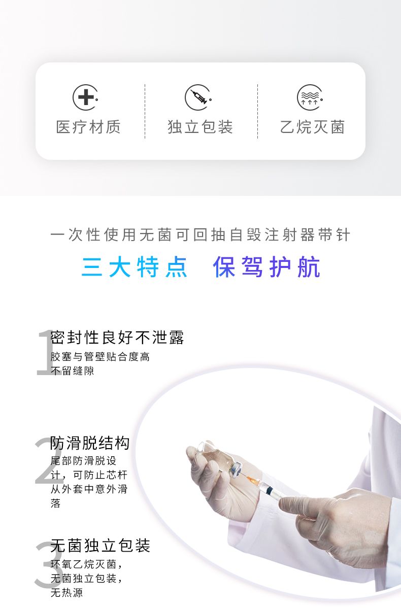 | 產(chǎn)品賣點(diǎn) | 優(yōu)勢(shì):外套、芯桿透明、光潔能清晰觀察到藥夜,外套和活塞具有良好的滑動(dòng)性能,操作輕松,方便。針管可完全回縮到注射器外套內(nèi),降低醫(yī)護(hù)人員被針刺傷及感染風(fēng)險(xiǎn)。 |