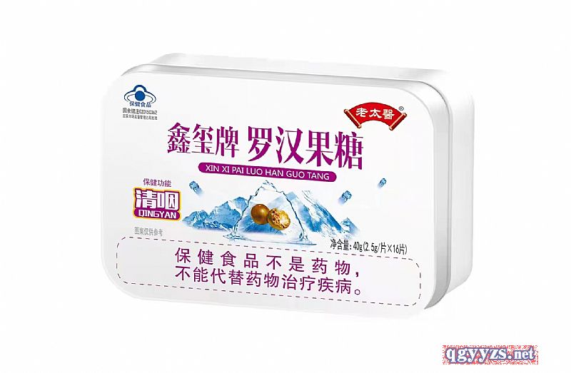 | 補(bǔ)充說明 | 本品是以羅漢果提取物、薄荷腦、薄荷油、白砂糖、蜂蜜、葡萄糖漿為主要原料制成的保健食品,經(jīng)動(dòng)物和人體試食功能試驗(yàn)證明,具有清咽的保健功能 |