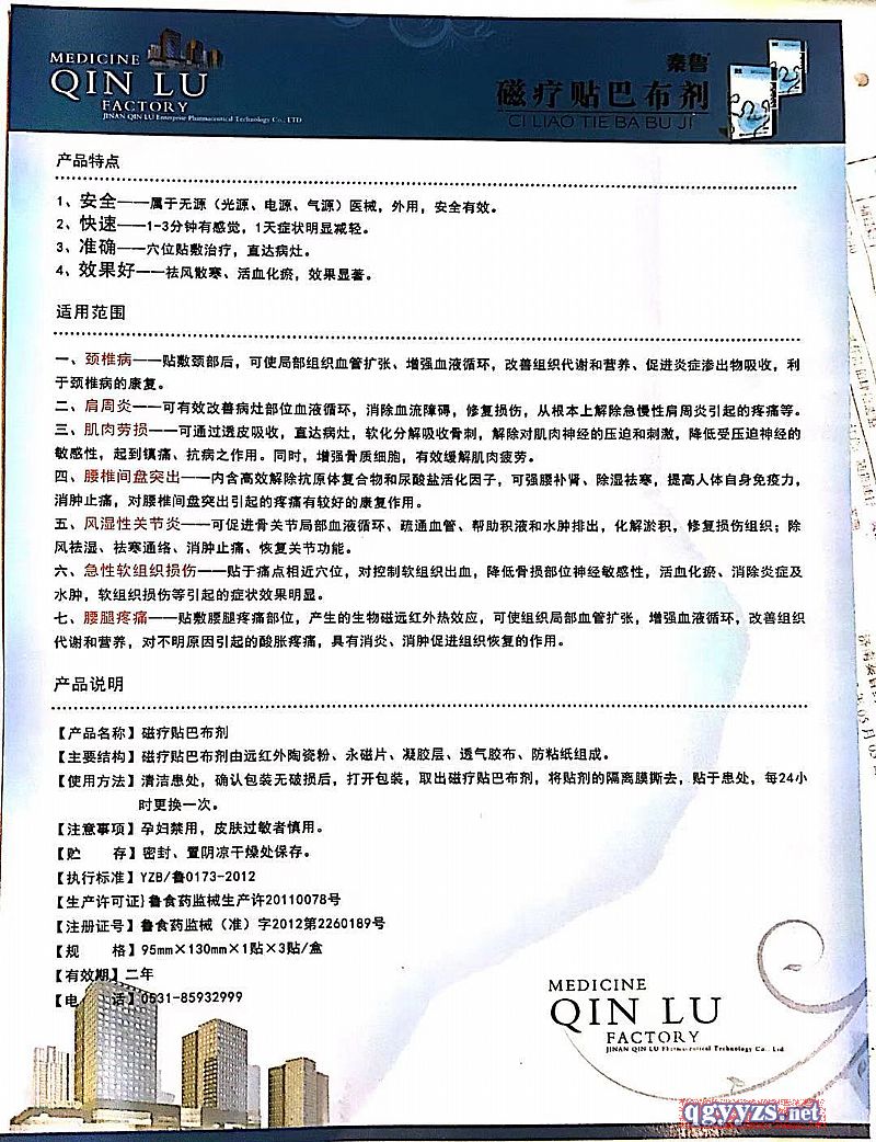 | 產(chǎn)品用途 | 詳見內置說明書以及包裝說明【產(chǎn)品技術要求】魯械注準20152260310 【規(guī)格】7cm×10cm×3貼×2袋 【生產(chǎn)單位】山東朱氏藥業(yè)集團有限公司 【生產(chǎn)地址】山東菏澤單縣經(jīng)濟技術開發(fā)區(qū) 兒童穴位貼敷療法的三個理論基礎 1、經(jīng)穴是氣血匯聚之處,有相應的調節(jié)人體生理病理功能作用。每個經(jīng)穴均有其相應的雙向調節(jié)作用,對藥物具有很高的敏感性,使使藥物理化作用較長時間的停留在經(jīng)穴或釋放到全身而產(chǎn)生整體治療調節(jié)作用。2、中醫(yī)的整體觀念,以五臟為中心,通過經(jīng)脈氣血循行把六腑、五體、五官孔竅、四肢百節(jié)等人身各組織器官聯(lián)成一個整體體系。3、中醫(yī)經(jīng)脈理論,經(jīng)絡是人體組織結構的重要組成部分,是氣血循行的通路。 |