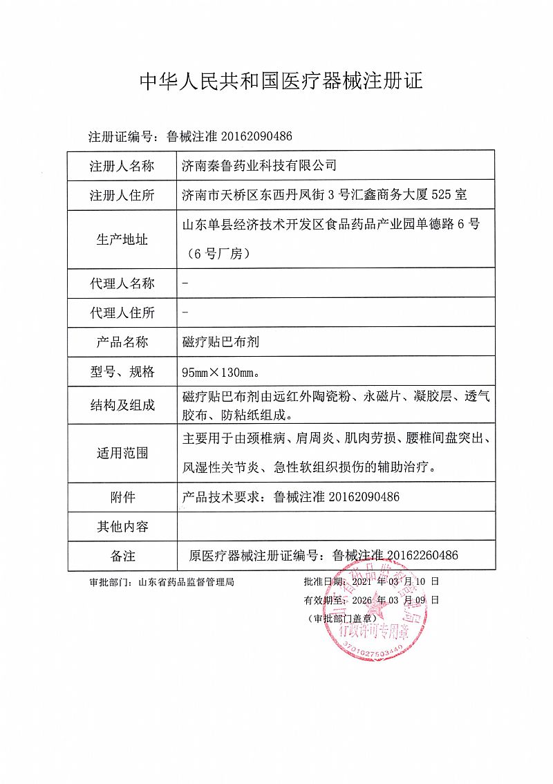 批準文號: 魯械注準20162090486 【驗證真?zhèn)?/a>】