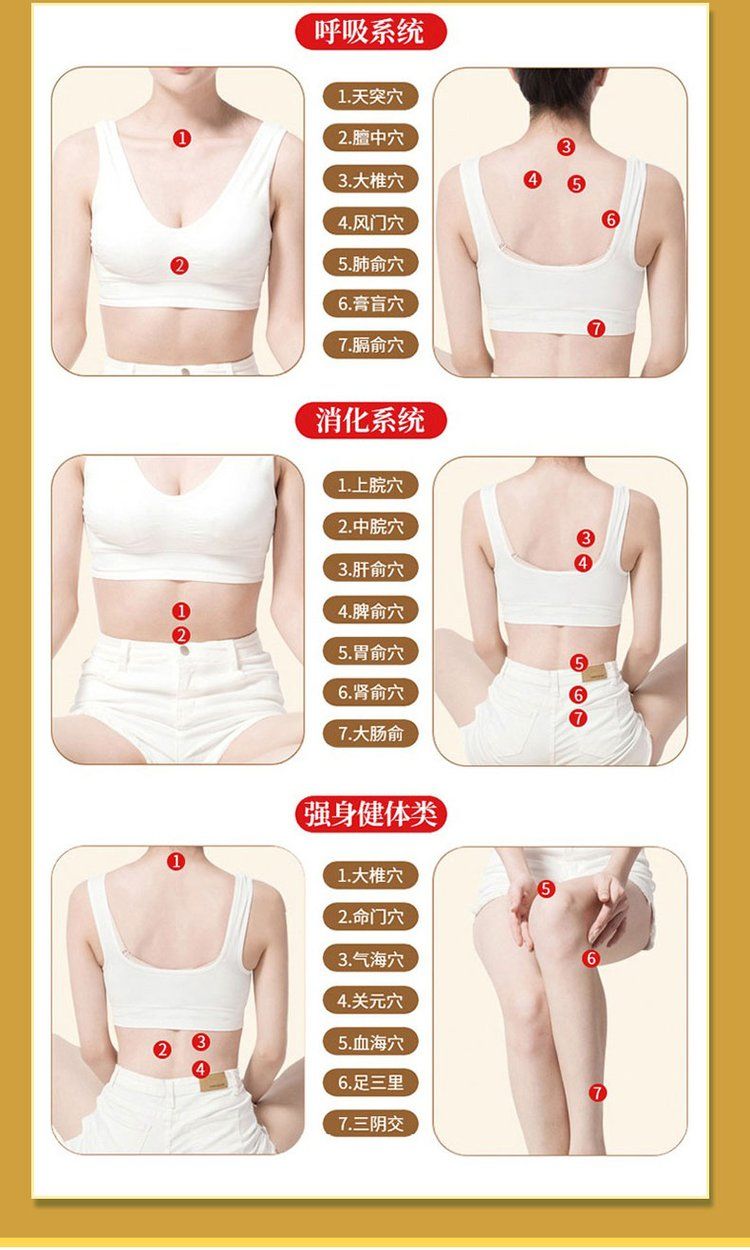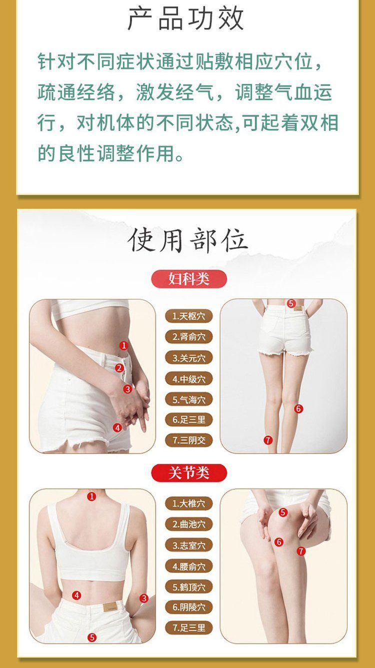 | 使用方法 | 詳見說明書1、清潔相應(yīng)穴位,先以拇指依次揉按相應(yīng)穴位,每次1~2分鐘,范圍由小到大。力量由輕到重,探尋敏感點。2、確認包裝無破損后,打開包裝,取出穴位貼敷治療貼,將貼劑的隔離膜撕去,以鋼珠對準相應(yīng)穴位敏感點貼壓,1片/穴、天,每日適度按壓3~5次,每次3~5分鐘,1個療程為10天,療程間隔2~3天。 |