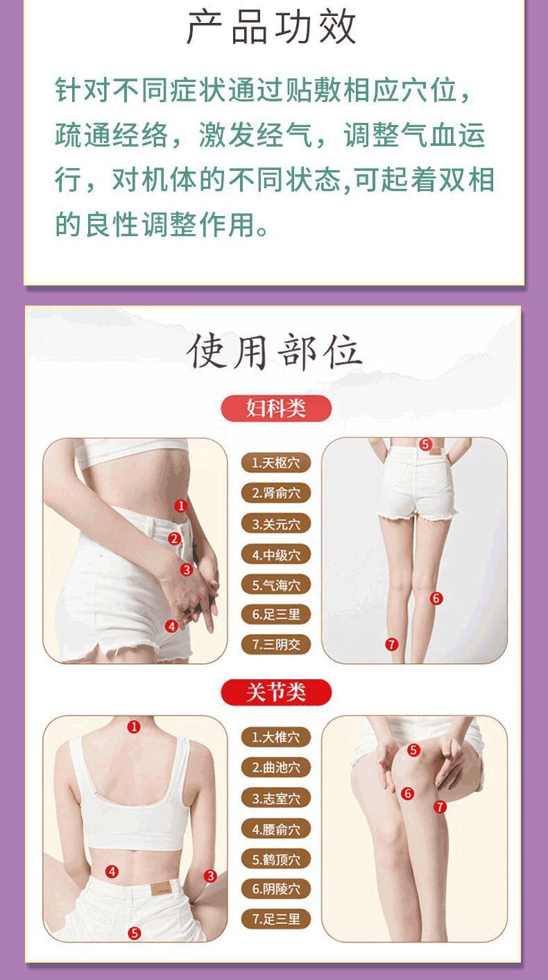 | 使用方法 | 1、清潔相應(yīng)穴位,先以拇指依次揉按相應(yīng)穴位,每次1~2分鐘,范圍由小到大。力量由輕到重,探尋敏感點。2、確認(rèn)包裝無破損后,打開包裝,取出穴位貼敷治療貼,將貼劑的隔離膜撕去,以鋼珠對準(zhǔn)相應(yīng)穴位敏感點貼壓,1片/穴、天,每日適度按壓3~5次,每次3~5分鐘,1個療程為10天,療程間隔2~3天。 |