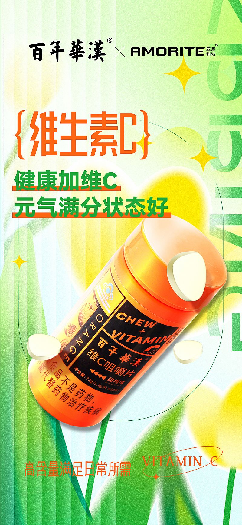 | 補(bǔ)充說(shuō)明 | 營(yíng)養(yǎng)知識(shí): 1、維生素C又名抗壞血酸,是一種水溶性維生素,易流失,人體不能自行合成,必須不斷從外界補(bǔ)充。 2、成人每天應(yīng)攝取60牌120毫克的維生素C,才能使血液中的維生素C濃度達(dá)到飽和,低于30毫克,身體部分機(jī)能就無(wú)法正常運(yùn)作。 3、維生素C是水溶性維生素,在人體中只能停留4小時(shí),建議,每天應(yīng)補(bǔ)充2次以維持血液中的維生素C濃度。 溫馨提示: 維生素C略帶酸性,作為微量營(yíng)養(yǎng)素被攝入體內(nèi),經(jīng)體內(nèi)溶解、消化,其酸堿性對(duì)人體的影響是微乎其微的,所以不必過(guò)份在意它的酸堿性 |