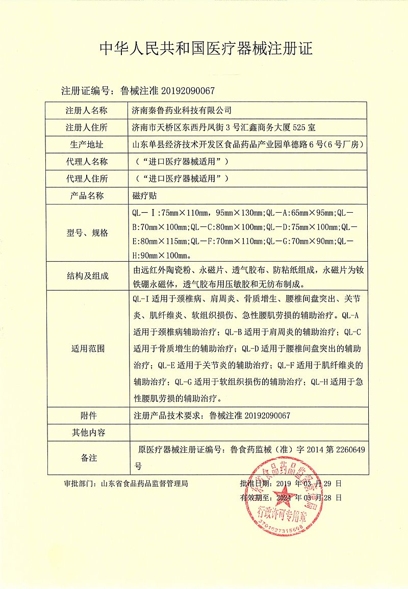 批準文號: 魯械注準20192090067 【驗證真?zhèn)?/a>】