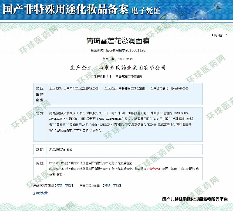 批準(zhǔn)文號(hào): 魯妝20160028 【驗(yàn)證真?zhèn)?/a>】