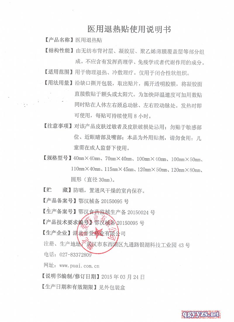 產(chǎn)品名稱: 醫(yī)用退熱貼