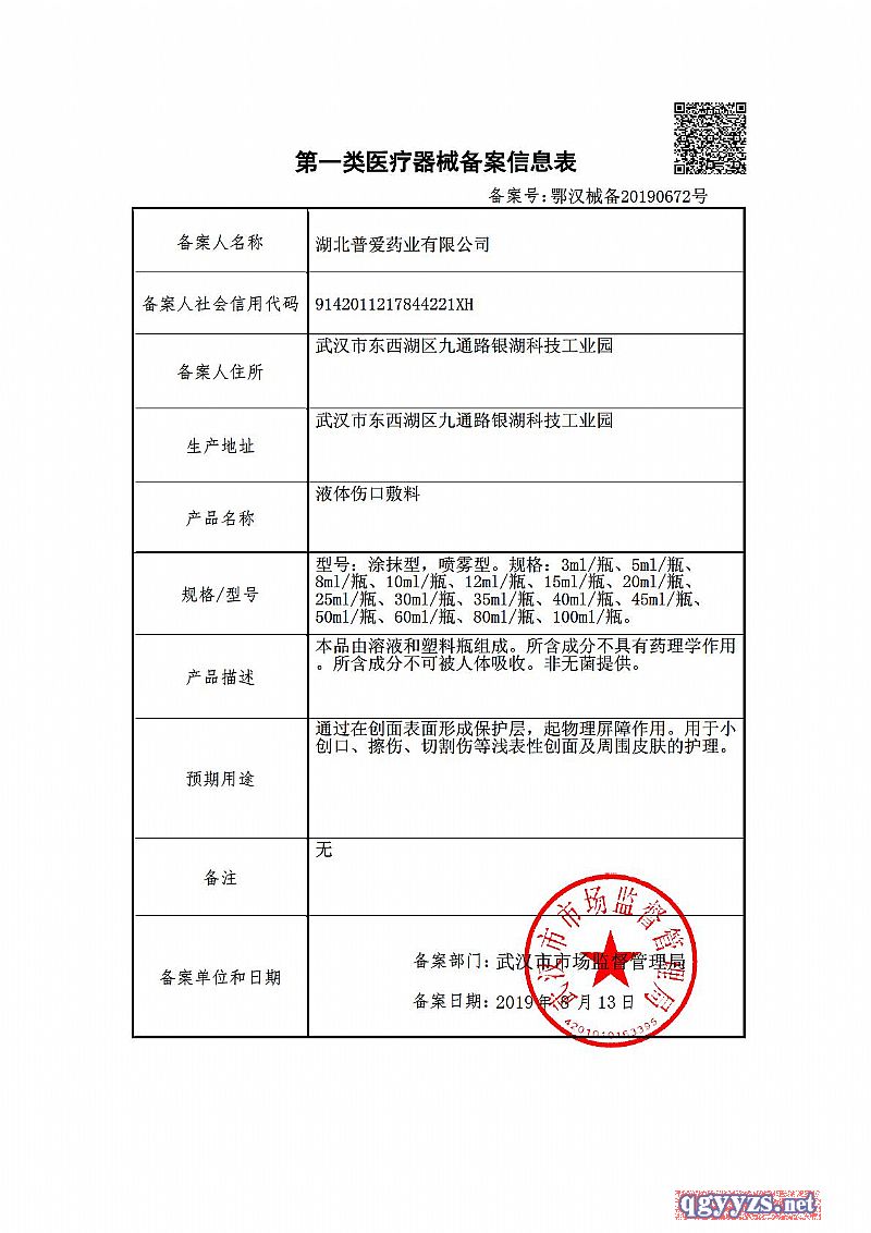 批準(zhǔn)文號: 鄂漢械備20190672號 【驗(yàn)證真?zhèn)?/a>】