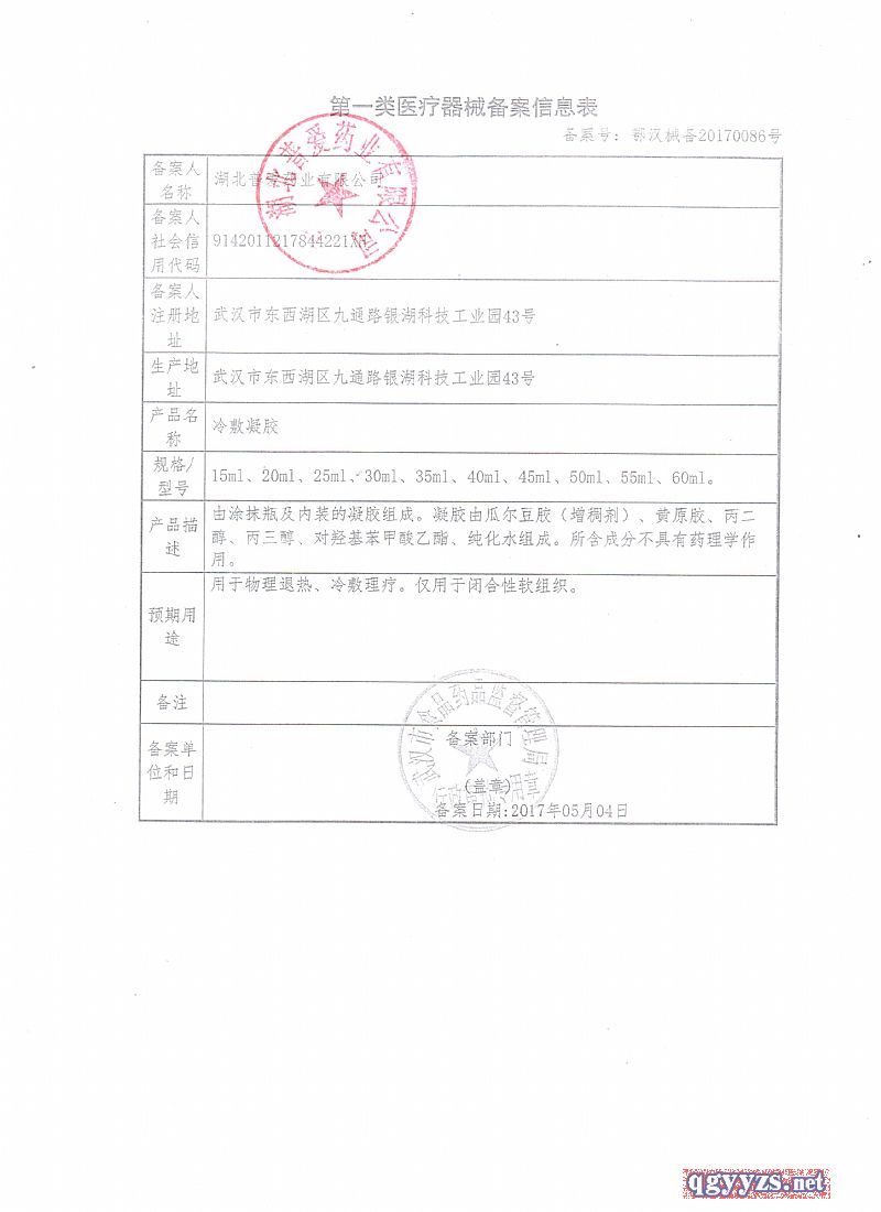 批準(zhǔn)文號(hào): 鄂漢械備20170086號(hào) 【驗(yàn)證真?zhèn)?/a>】