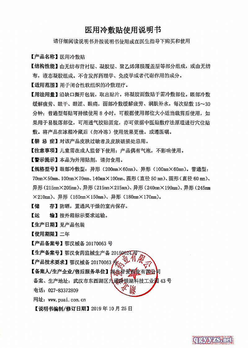 | 產(chǎn)品規(guī)格 | 眼部冷敷型:異形(200mm×60mm) |