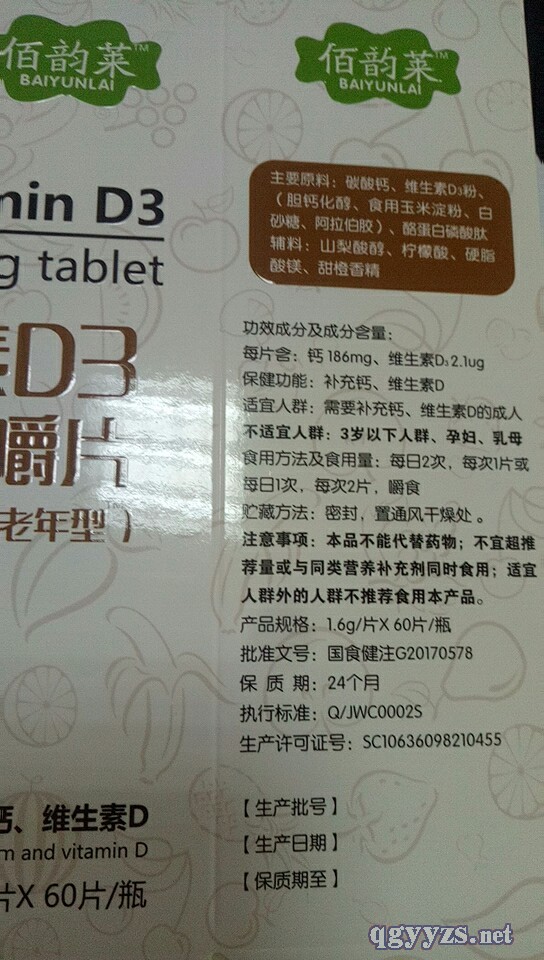 | 英文名稱(chēng) | Vitamin D3 calcium chewable tablets |