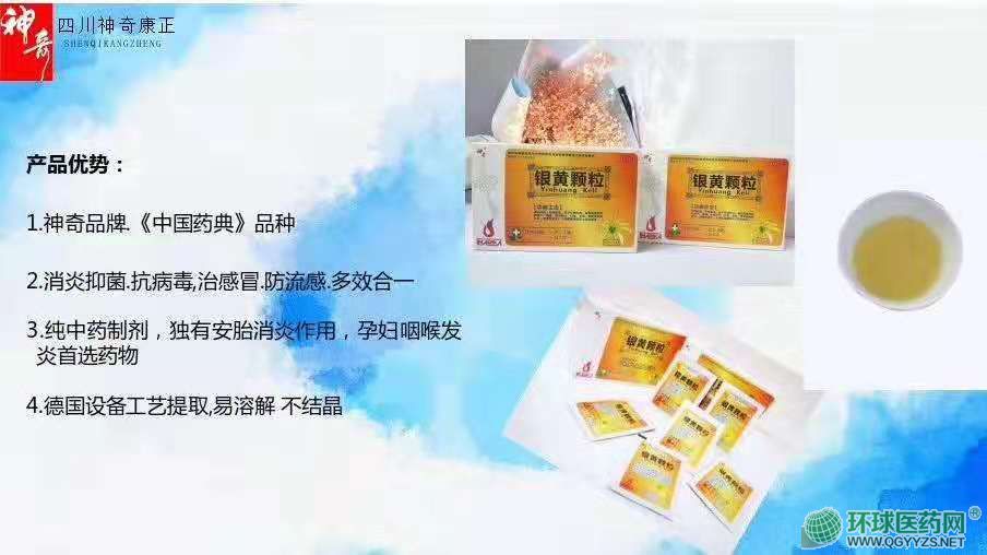 | 產品賣點 | 銀黃顆粒: 1.消炎抗菌,抗病毒,治感冒,多效合一 2.中藥制劑,有安胎消炎作用,孕婦咽喉發(fā)炎,可靠藥物 3.德國設備工藝提取,口味純正,易溶解不結晶 |