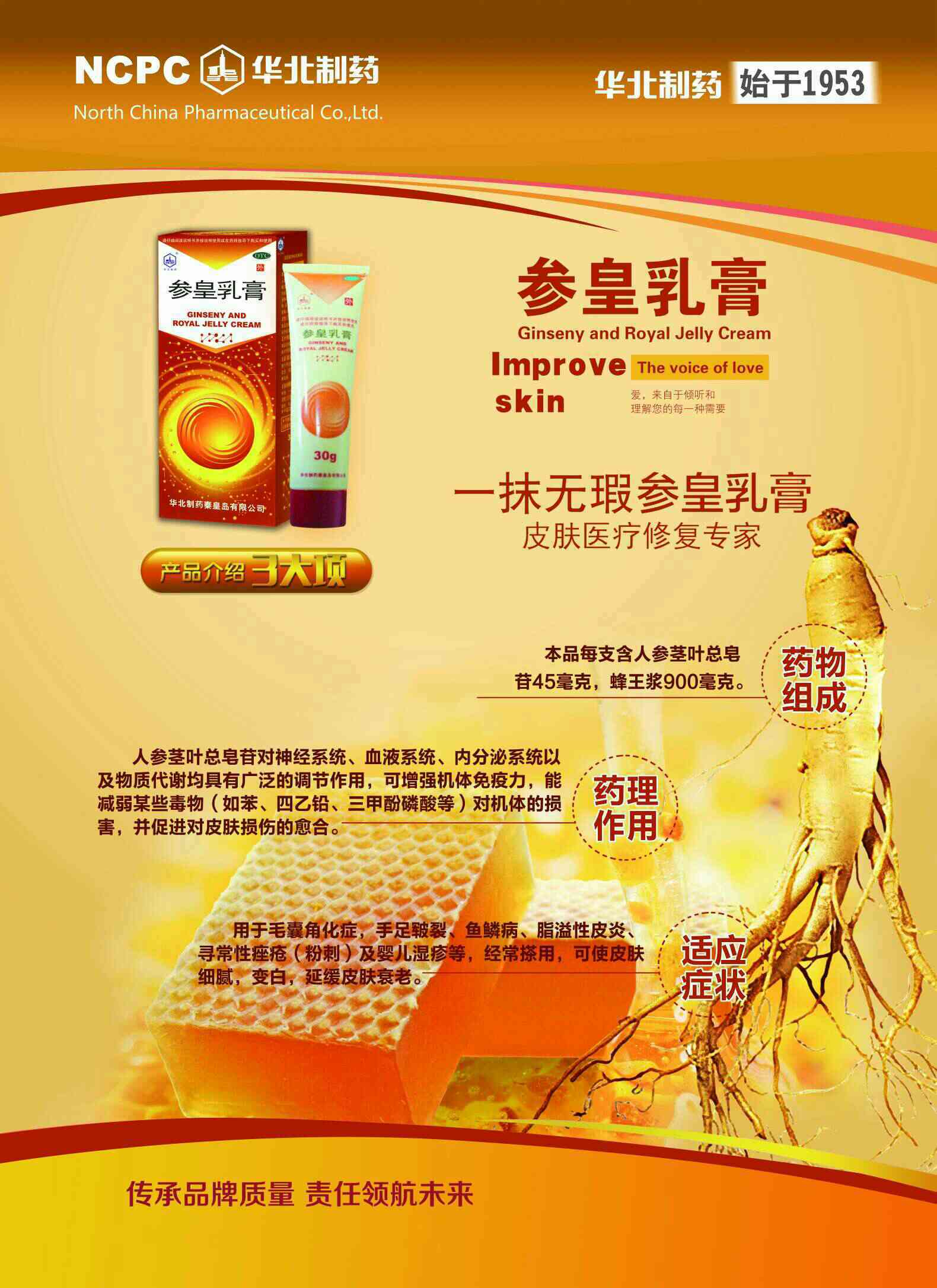 | 補(bǔ)充說明 | 國藥準(zhǔn)字,一抹無瑕~參黃乳膏 主治:手續(xù)皸裂,脂溢性皮炎,痤瘡,毛囊角化癥,魚鱗病,嬰兒濕疹,粉刺等。 經(jīng)常涂抹,皮膚白皙,嫩滑,要換皮膚衰老。 老中幼孕,無任何禁忌,****,可替代手霜。 療效強(qiáng),價格低,皮膚科上量產(chǎn)品,中標(biāo)產(chǎn)品。 可臨床,可otc,可終端,可院外,可控銷。 |