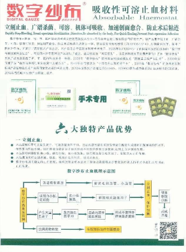 產(chǎn)品名稱: 可吸收止血材料-數(shù)字紗布