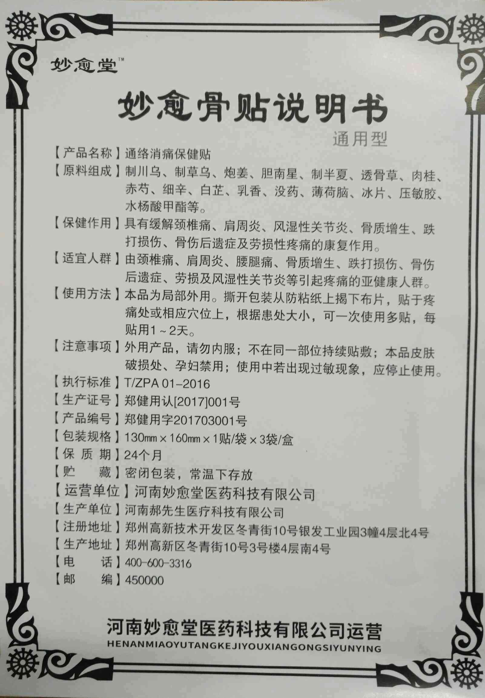 | 產(chǎn)品名稱 | 妙愈骨貼通用貼 |