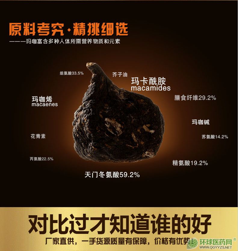 | 作用機(jī)理 | 瑪咖可有效延緩衰老增強(qiáng)活力,舒緩壓力,提高免疫力,改善亞健康狀態(tài) |