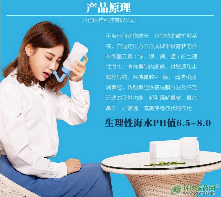 | 其它說明 | 物理療法,不含任何藥物成份、 不含激素、抗生素;通過對鼻 腔進行有效清洗,修正鼻腔內(nèi) PH值,通過微量元素起到殺菌、消炎、抗過敏的抗過敏作用,幫助鼻腔恢復(fù)正常免疫功能。 |
