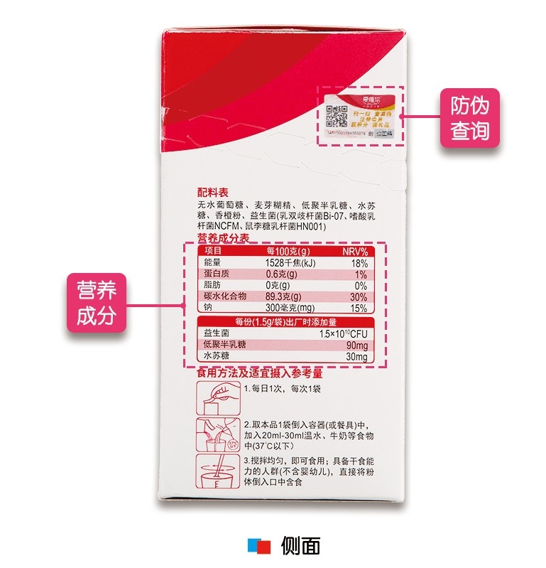 | 補充說明 | 產(chǎn)品優(yōu)勢1、本品采用美國杜邦丹尼斯克進口的菌株(是具有100多年歷史的公司) 2、BI-07具有改善輕度便秘和相關(guān)胃腸道的癥狀,促進營養(yǎng)物質(zhì)吸收的作用 4、杜邦益生菌在國內(nèi)外具有長期的使用歷史,其性被政府官方機構(gòu)認可。具有***2011年第25號公告《可用于嬰幼兒食品的菌種名單》六種菌種中的四種,本產(chǎn)品采用的是其中的兩種。 5、本產(chǎn)品屬于益生菌和益生元結(jié)合,功效**,而且產(chǎn)品配料中不含有食品添加劑。 |